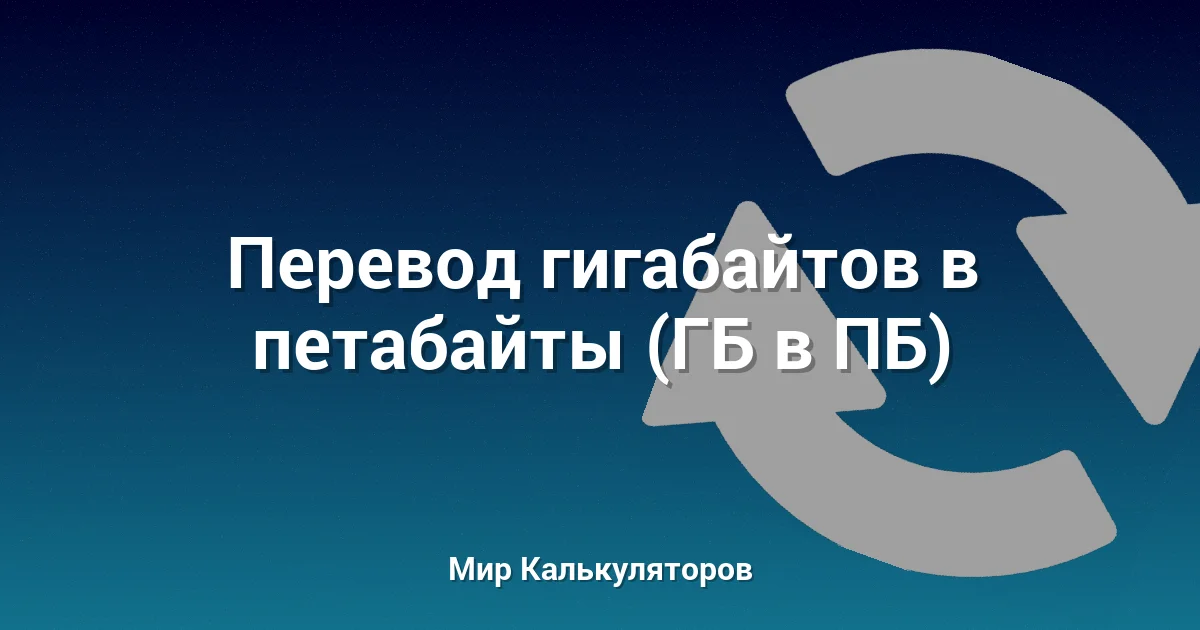 Этот онлайн конвертер поможет вам мгновенно перевести объем данных из гигабайтов (ГБ) в петабайты (ПБ).