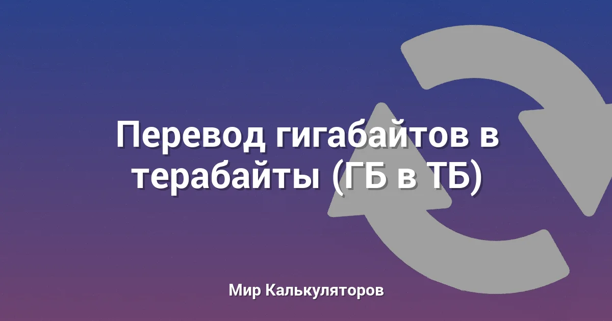 Этот онлайн конвертер поможет вам мгновенно перевести объем данных из гигабайтов (ГБ) в терабайты (ТБ).