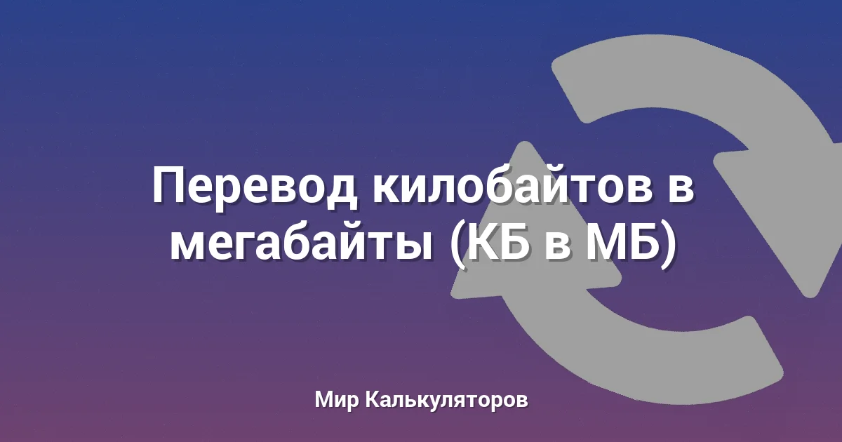 Этот онлайн конвертер поможет вам мгновенно перевести объем данных из килобайтов (КБ) в мегабайты (МБ).