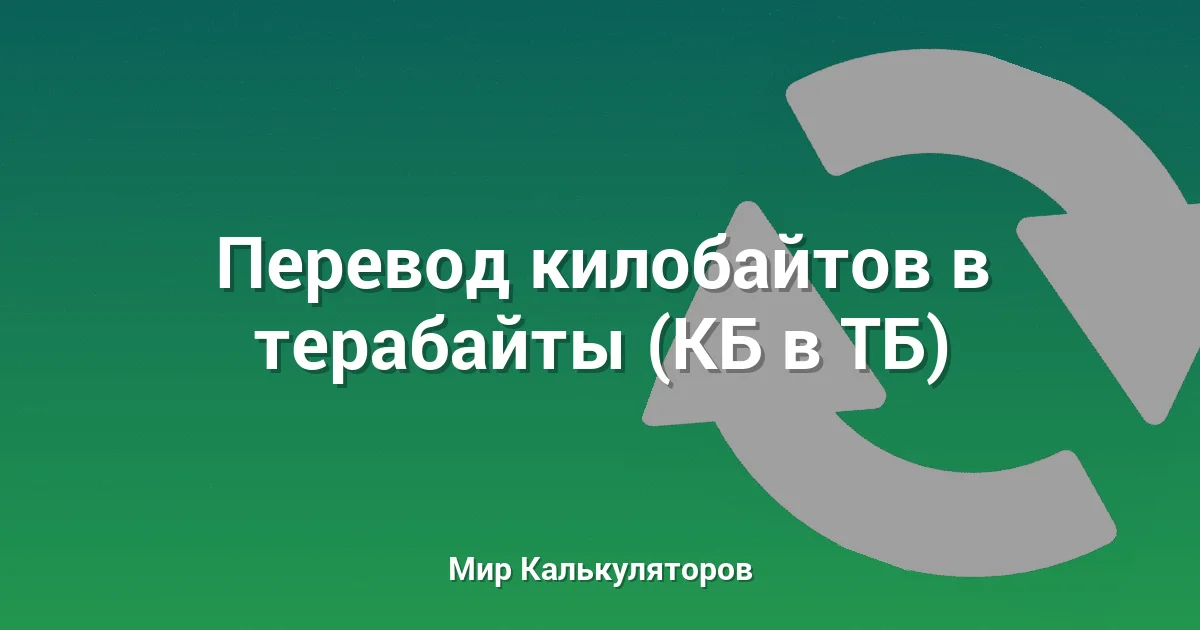 Этот онлайн конвертер поможет вам мгновенно перевести объем данных из килобайтов (КБ) в терабайты (ТБ).