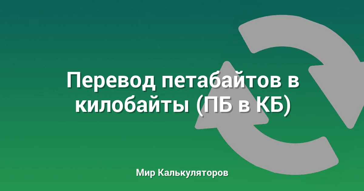 Этот онлайн конвертер поможет вам мгновенно перевести объем данных из петабайтов (ПБ) в килобайты (КБ).