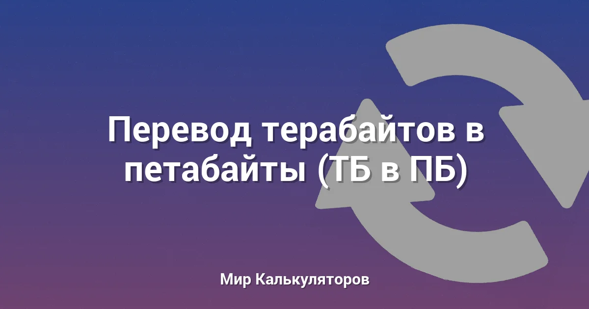 Этот онлайн конвертер поможет вам мгновенно перевести объем данных из терабайтов (ТБ) в петабайты (ПБ).