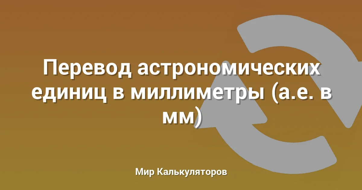 Используйте калькулятор для перевода длины из астрономических единиц (а.е.) в миллиметры (мм).