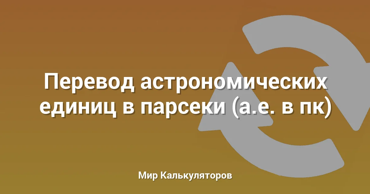 Используйте калькулятор для перевода длины из астрономических единиц (а.е.) в парсеки (пк).