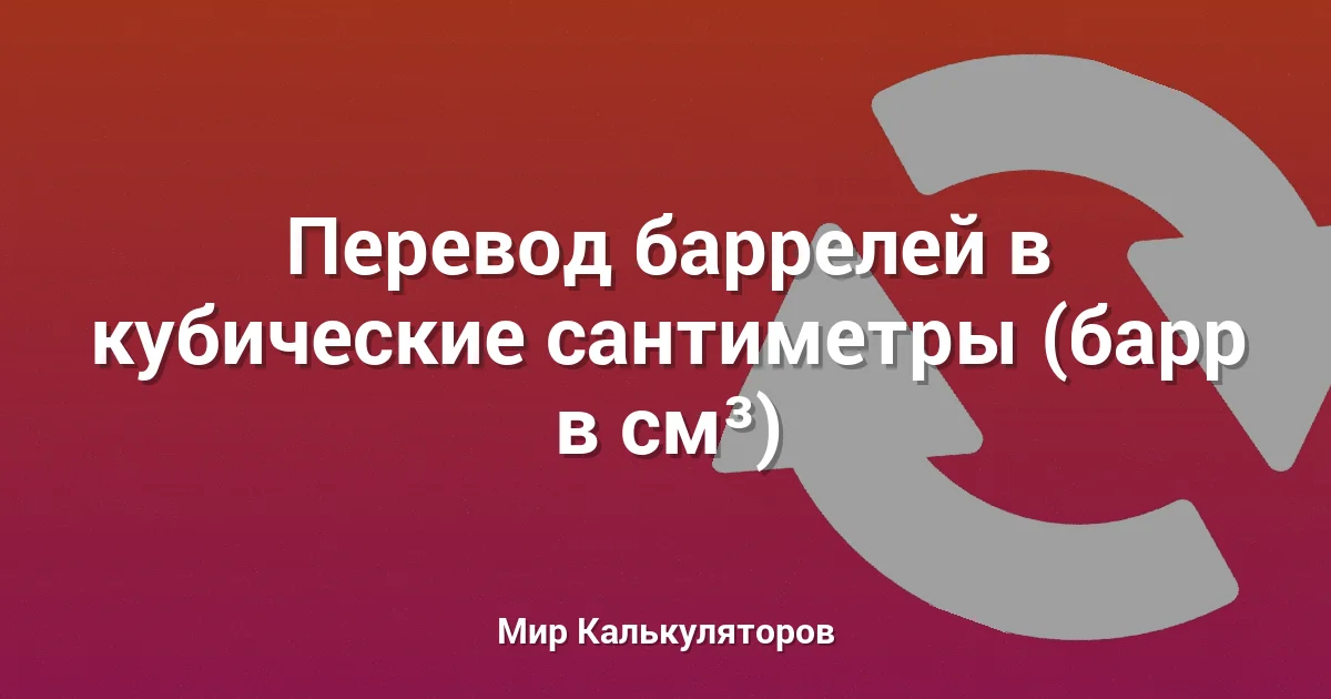 Перевод баррелей в кубические сантиметры (барр в см³)