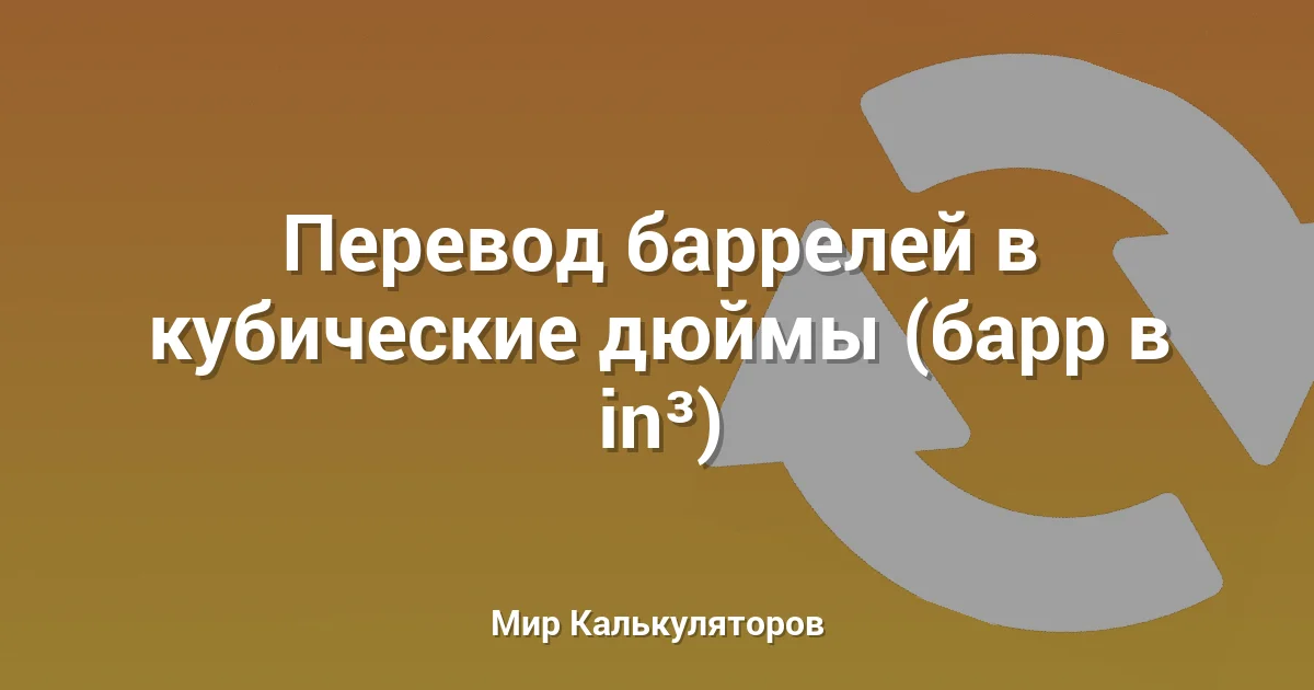 Конвертер позволяет быстро перевести значение из баррелей (барр) в кубические дюймы (in³).