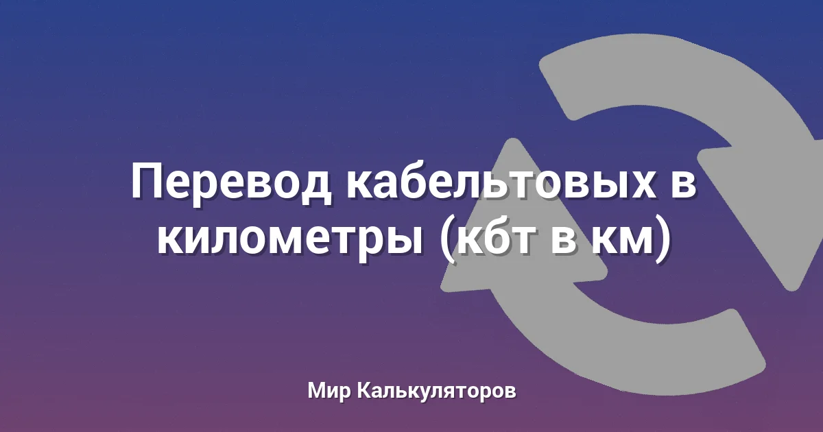 Используйте калькулятор для перевода длины из кабельтовых (кбт) в километры (км).