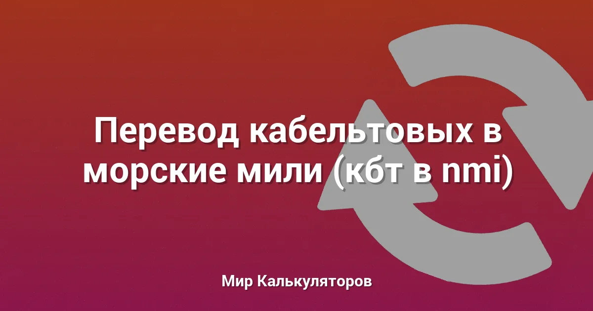 Используйте калькулятор для перевода длины из кабельтовых (кбт) в морские мили (nmi).