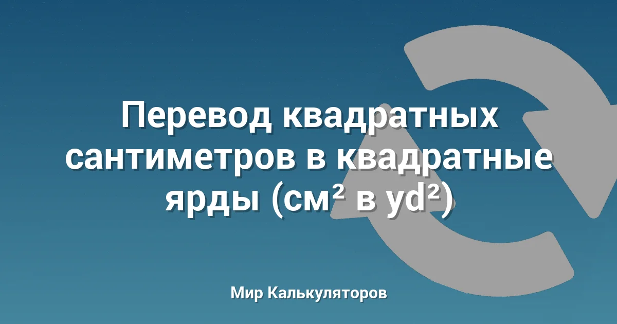 Используйте этот калькулятор для конвертации площади из квадратных сантиметров (см²) в квадратные ярды (yd²).