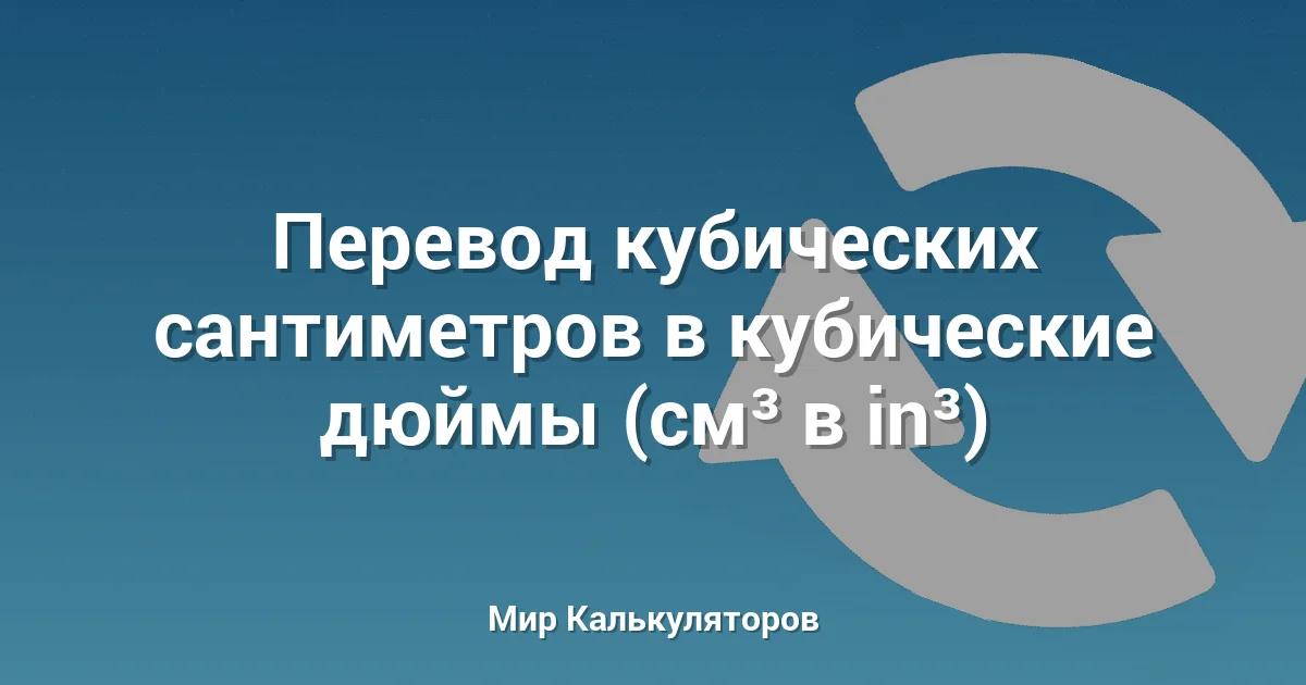 Конвертер позволяет быстро перевести значение из кубических сантиметров (см³) в кубические дюймы (in³).