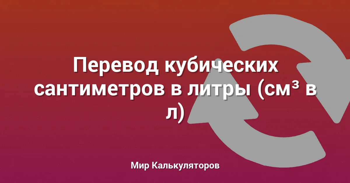 Конвертер позволяет быстро перевести значение из кубических сантиметров (см³) в литры (л).