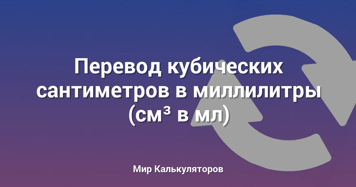 Перевод кубических сантиметров в миллилитры (см³ в мл)