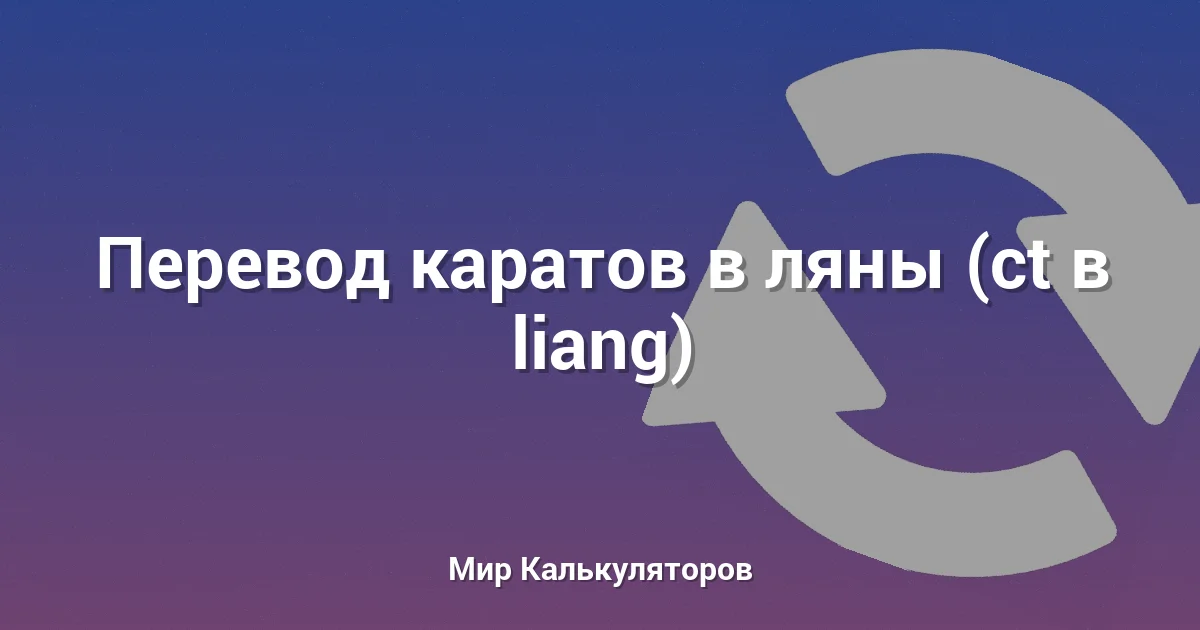 Простой инструмент для конвертации массы из каратов (ct) в ляны (liang).