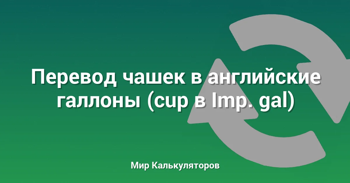 Конвертер для перевода объема из чашек (cup) в английские галлоны (Imp. gal). Полезен в кулинарии, автомобильном деле и науке.