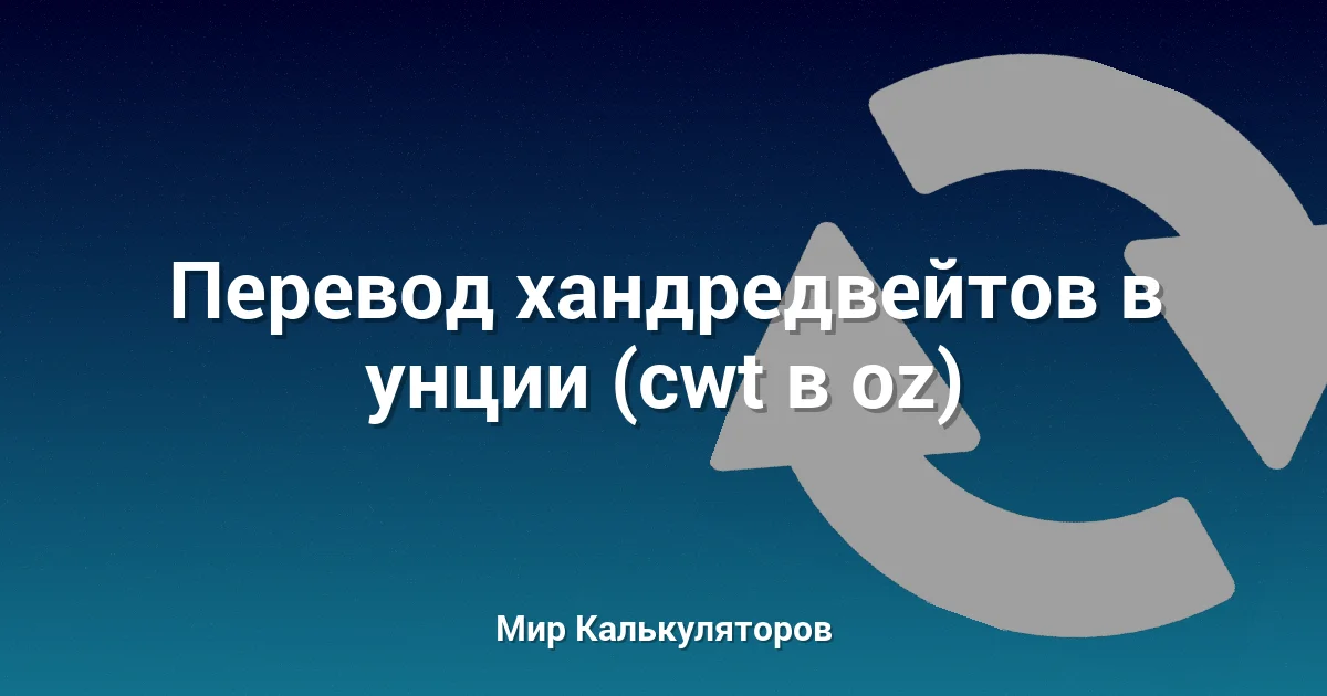 Простой инструмент для конвертации массы из хандредвейтов (cwt) в унции (oz).