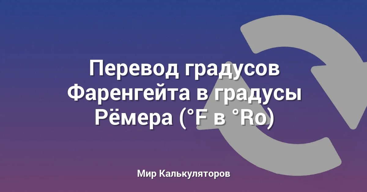 Этот калькулятор позволяет точно перевести температуру из градусов Фаренгейта (°F) в градусы Рёмера (°Ro).
