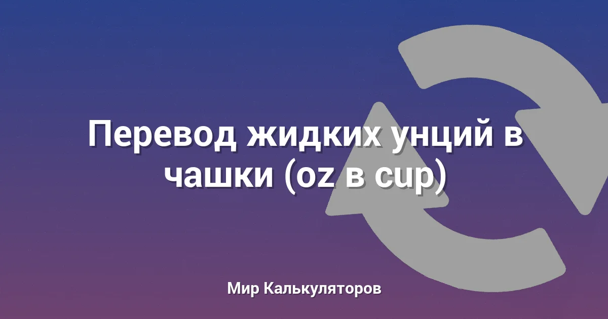Конвертер для перевода объема из жидких унций (oz) в чашки (cup). Полезен в кулинарии, автомобильном деле и науке.