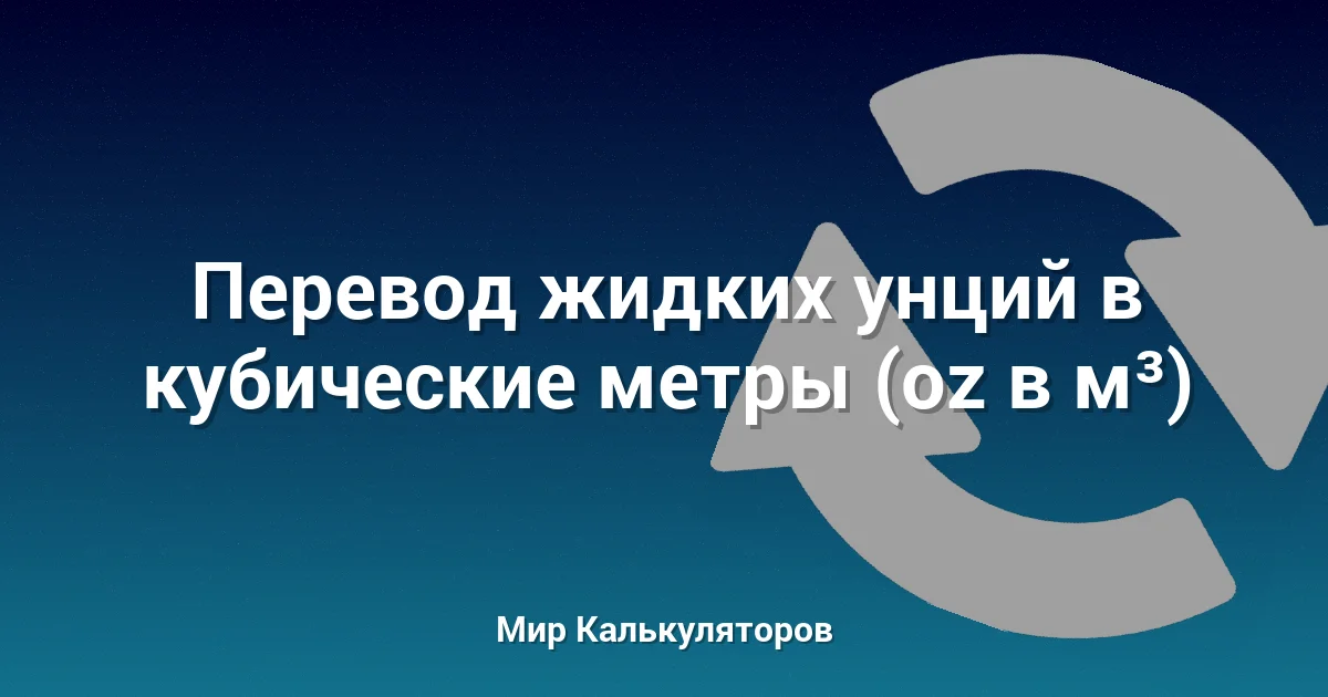 Конвертер для перевода объема из жидких унций (oz) в кубические метры (м³). Полезен в кулинарии, автомобильном деле и науке.