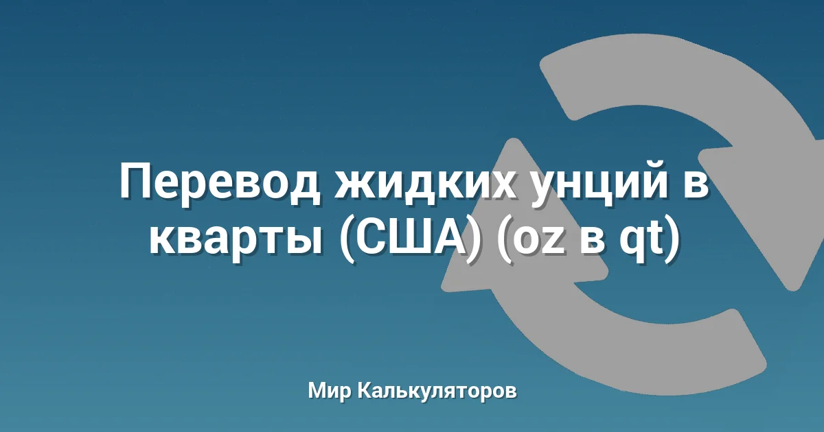 Конвертер для перевода объема из жидких унций (oz) в кварты (США) (qt). Полезен в кулинарии, автомобильном деле и науке.