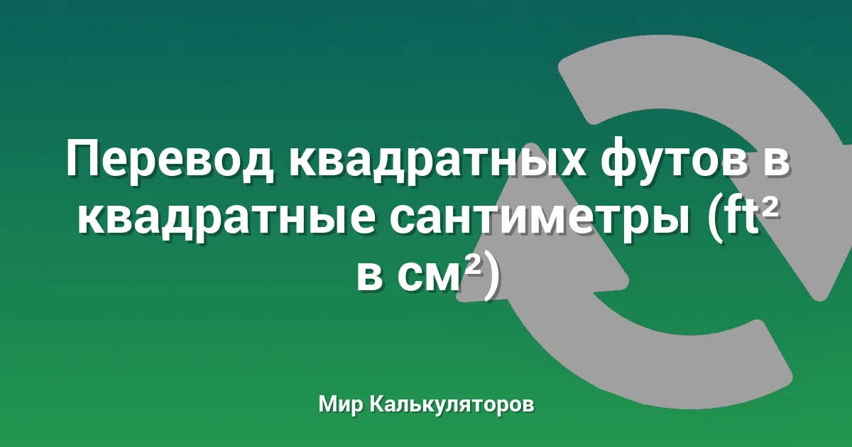 Используйте этот калькулятор для конвертации площади из квадратных футов (ft²) в квадратные сантиметры (см²).