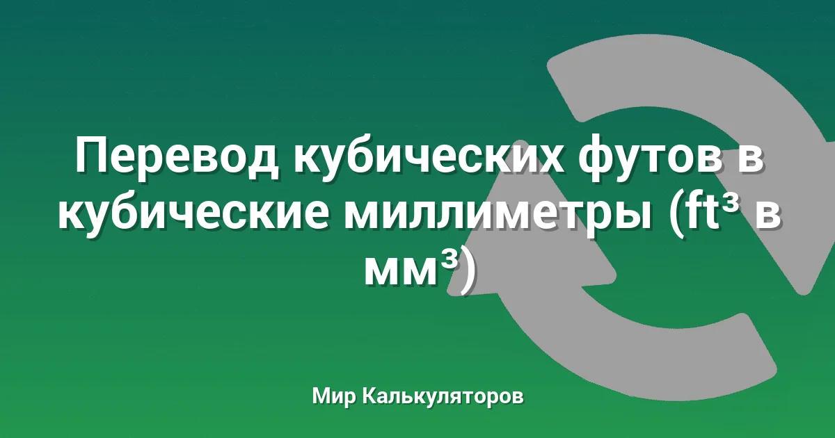 Конвертер позволяет быстро перевести значение из кубических футов (ft³) в кубические миллиметры (мм³).