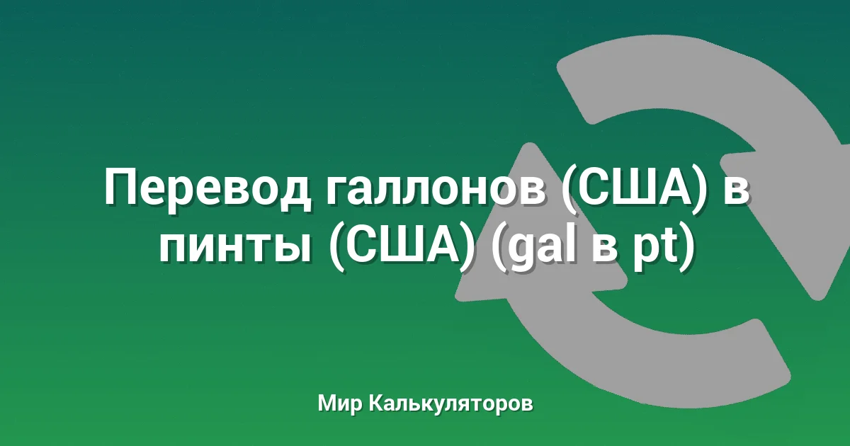 Конвертер для перевода объема из галлонов (США) (gal) в пинты (США) (pt). Полезен в кулинарии, автомобильном деле и науке.