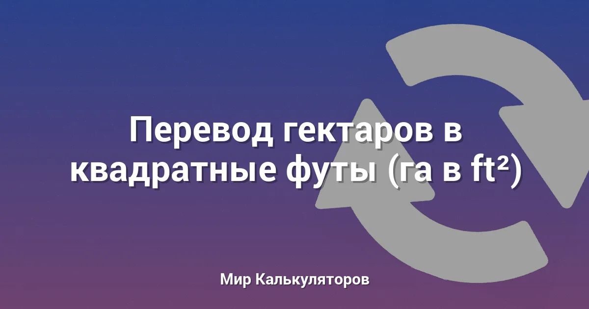 Используйте этот калькулятор для конвертации площади из гектаров (га) в квадратные футы (ft²).
