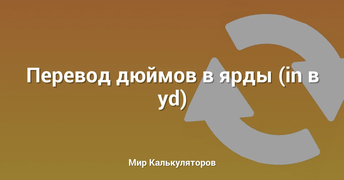 Используйте калькулятор для перевода длины из дюймов (in) в ярды (yd).