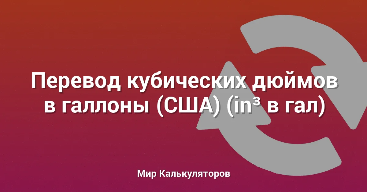 Конвертер позволяет быстро перевести значение из кубических дюймов (in³) в галлоны (США) (гал).