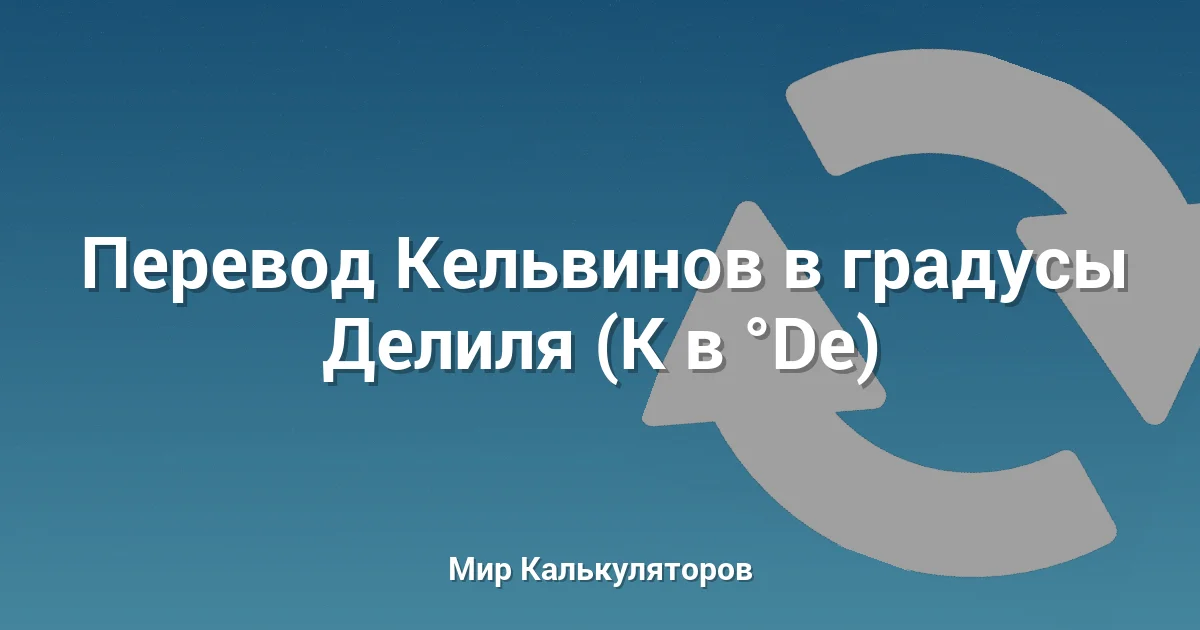 Этот калькулятор позволяет точно перевести температуру из Кельвинов (K) в градусы Делиля (°De).