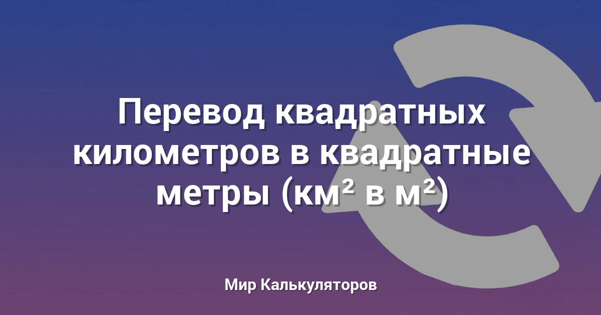 Используйте этот калькулятор для конвертации площади из квадратных километров (км²) в квадратные метры (м²).