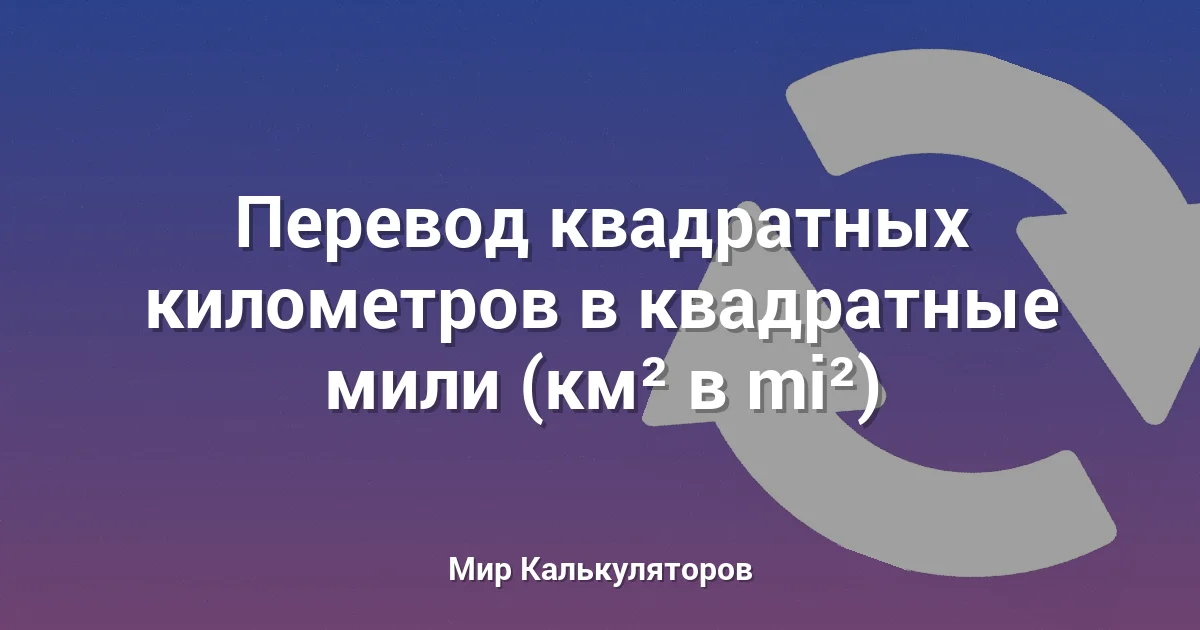 Используйте этот калькулятор для конвертации площади из квадратных километров (км²) в квадратные мили (mi²).