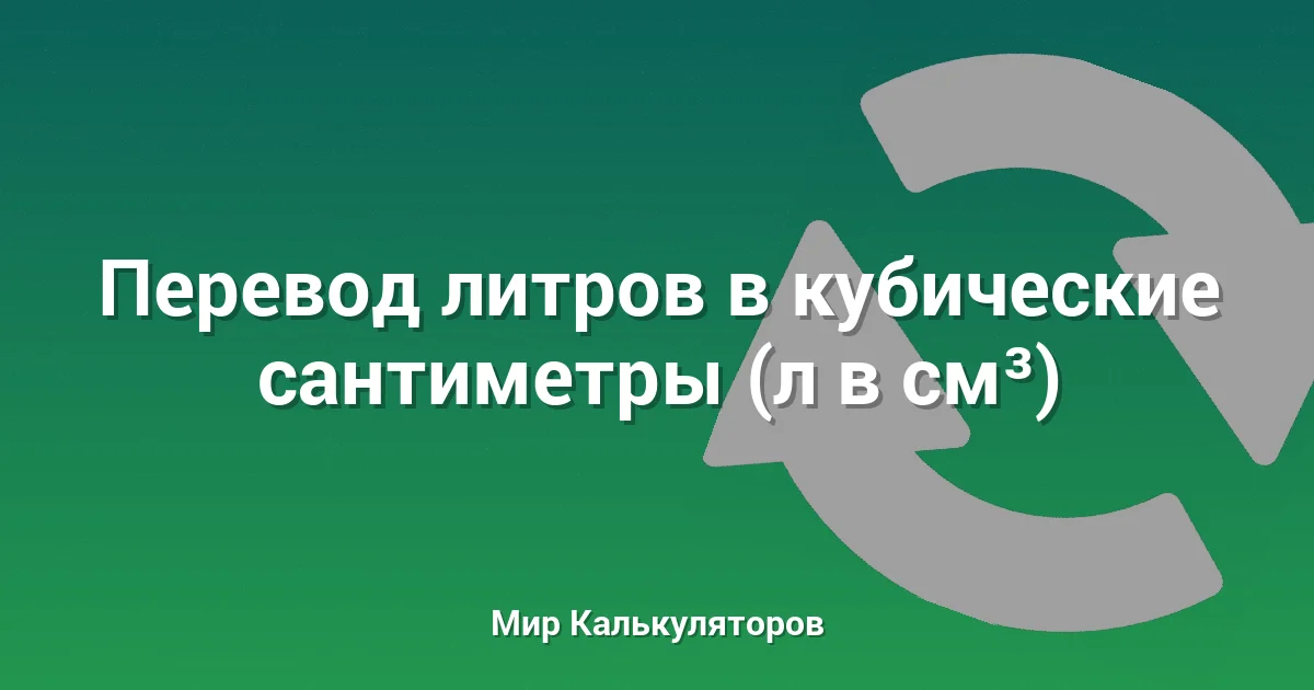 Конвертер позволяет быстро перевести значение из литров (л) в кубические сантиметры (см³).