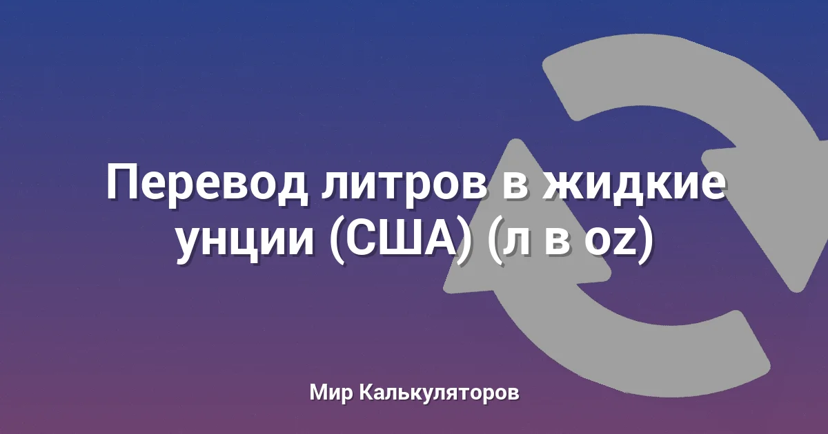 Конвертер для перевода объема из литров (л) в жидкие унции (США) (oz). Полезен в кулинарии, автомобильном деле и науке.