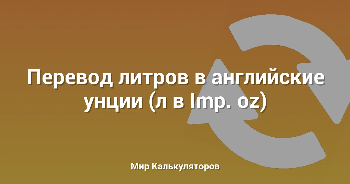 Конвертер для перевода объема из литров (л) в английские унции (Imp. oz). Полезен в кулинарии, автомобильном деле и науке.
