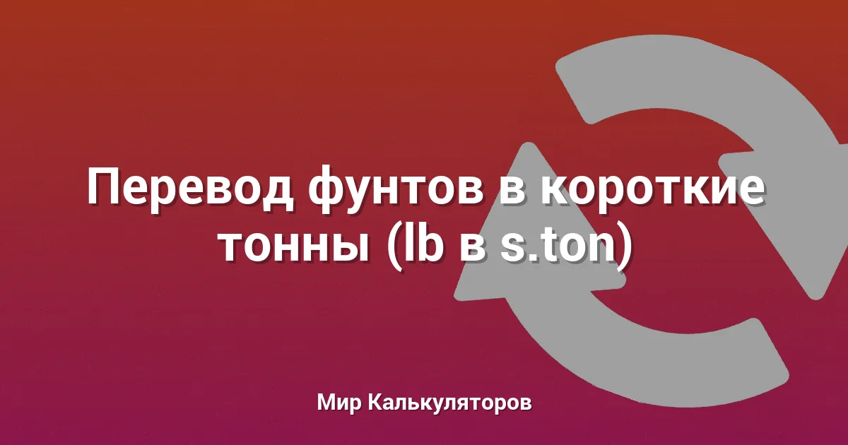 Перевод фунтов в короткие тонны (lb в s.ton)