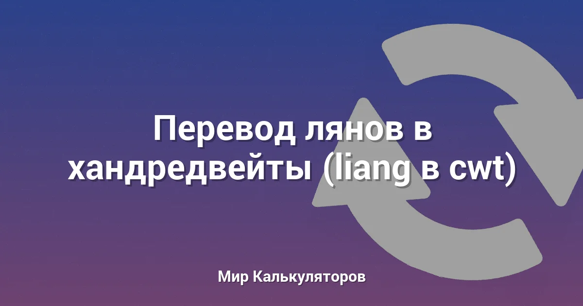 Простой инструмент для конвертации массы из лянов (liang) в хандредвейты (cwt).