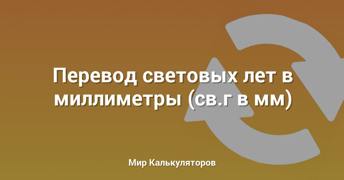 Используйте калькулятор для перевода длины из световых лет (св.г) в миллиметры (мм).