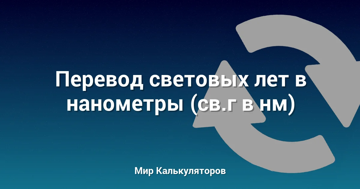 Используйте калькулятор для перевода длины из световых лет (св.г) в нанометры (нм).