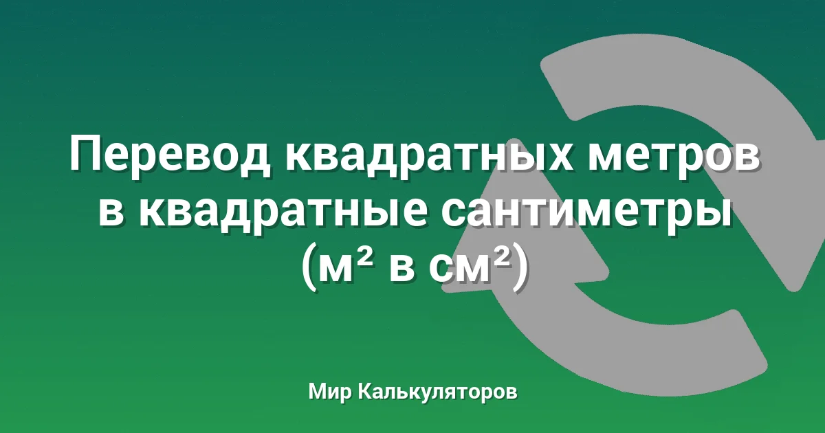 Используйте этот калькулятор для конвертации площади из квадратных метров (м²) в квадратные сантиметры (см²).
