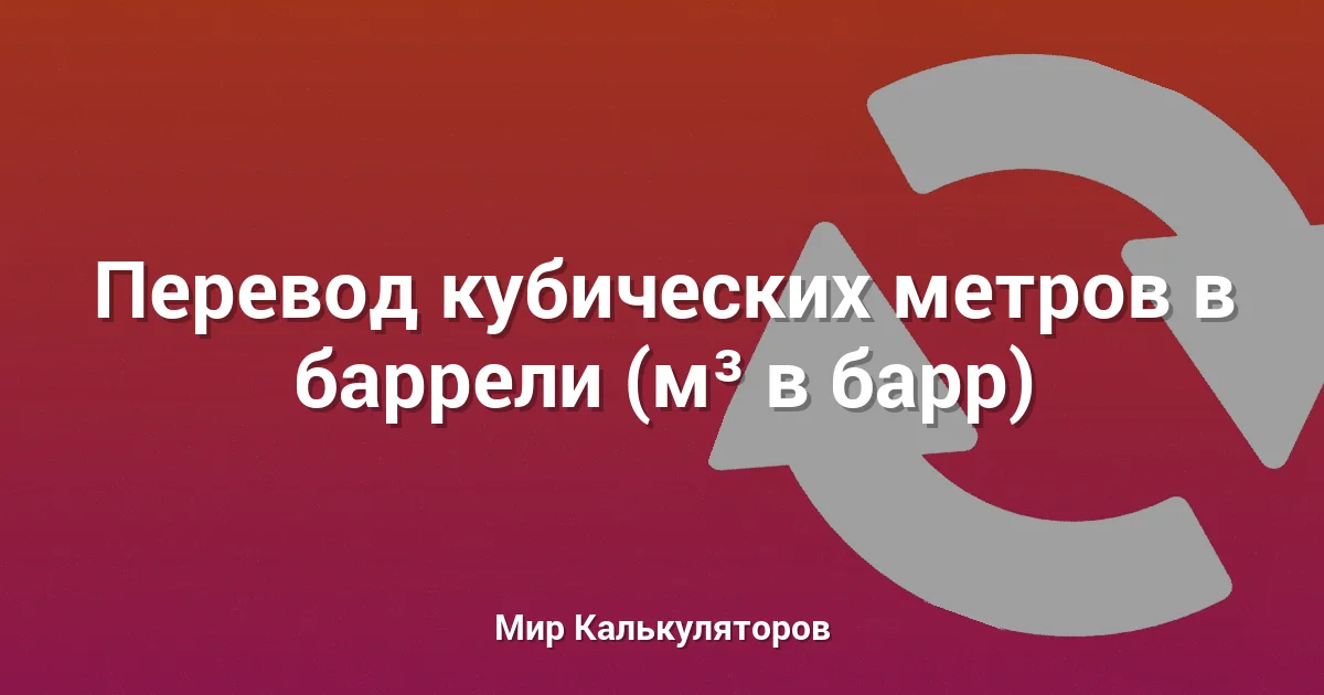 Конвертер позволяет быстро перевести значение из кубических метров (м³) в баррели (барр).