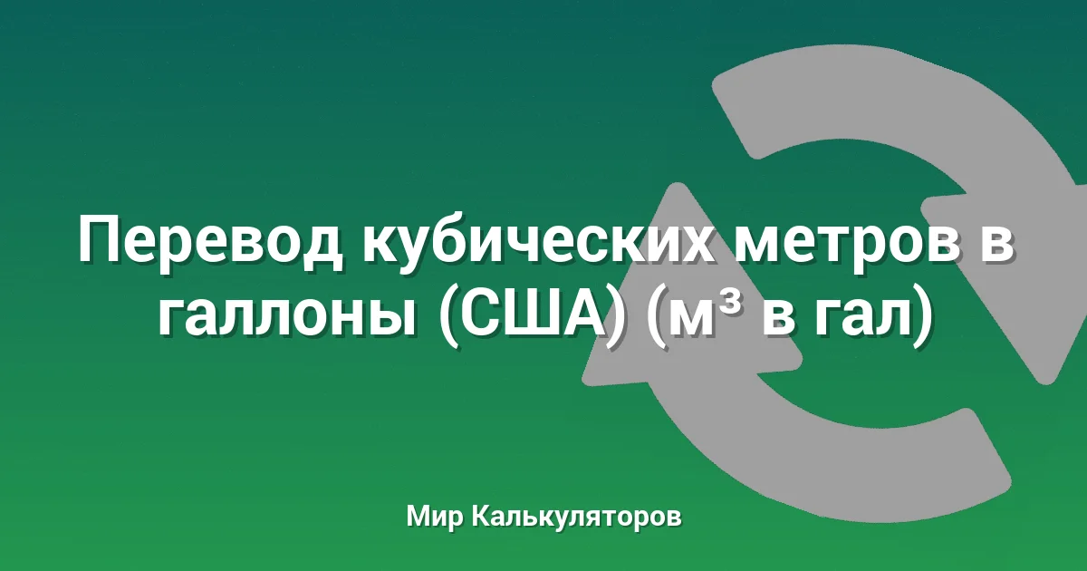 Конвертер позволяет быстро перевести значение из кубических метров (м³) в галлоны (США) (гал).