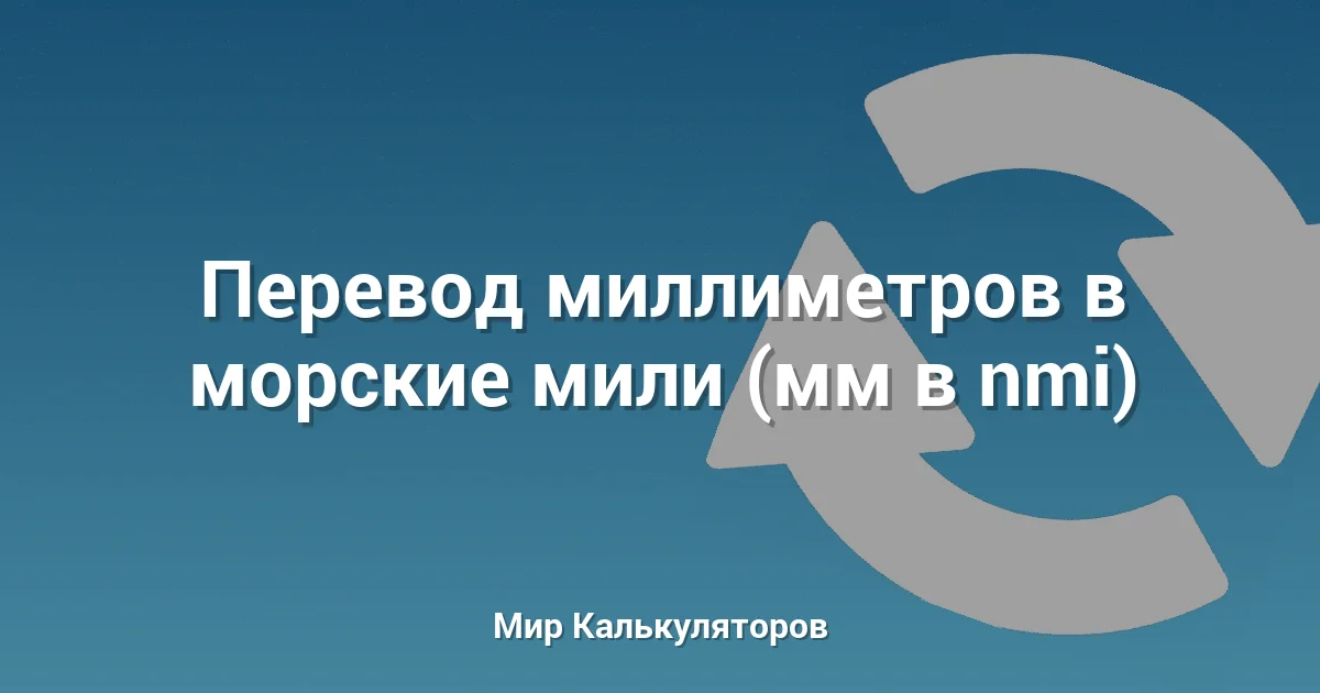 Используйте калькулятор для перевода длины из миллиметров (мм) в морские мили (nmi).