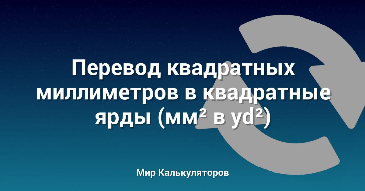Используйте этот калькулятор для конвертации площади из квадратных миллиметров (мм²) в квадратные ярды (yd²).