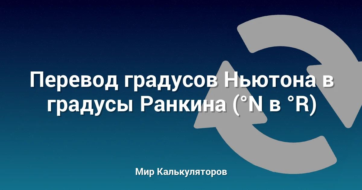Этот калькулятор позволяет точно перевести температуру из градусов Ньютона (°N) в градусы Ранкина (°R).