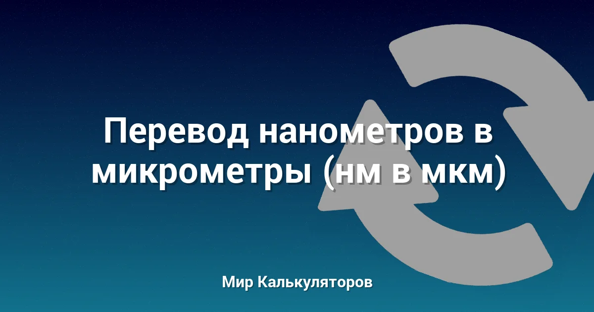 Используйте калькулятор для перевода длины из нанометров (нм) в микрометры (мкм).