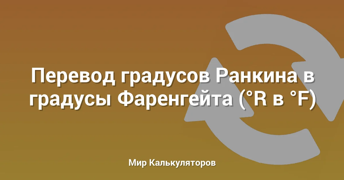 Этот калькулятор позволяет точно перевести температуру из градусов Ранкина (°R) в градусы Фаренгейта (°F).