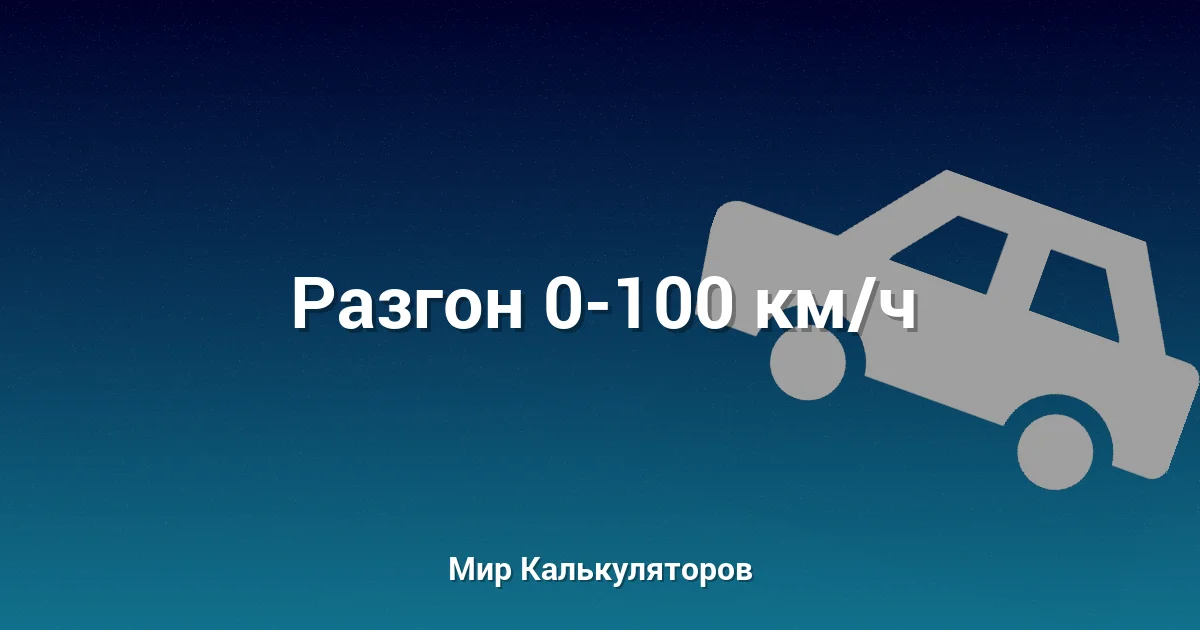 Грубая формула: Время = Вес / Мощность * k, где k — коэффициент привода (для переднего ~0.07, заднего ~0.065, полного ~0.06). Наш калькулятор использует более сложную модель, учитывая аэродинамику.