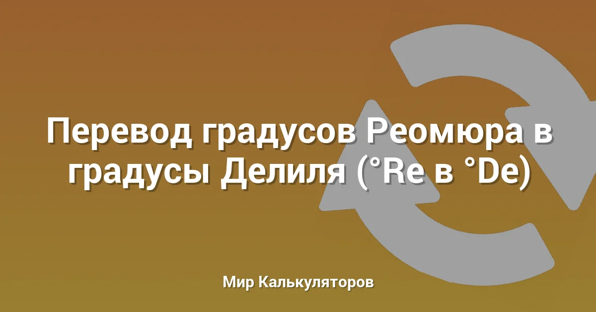 Этот калькулятор позволяет точно перевести температуру из градусов Реомюра (°Re) в градусы Делиля (°De).