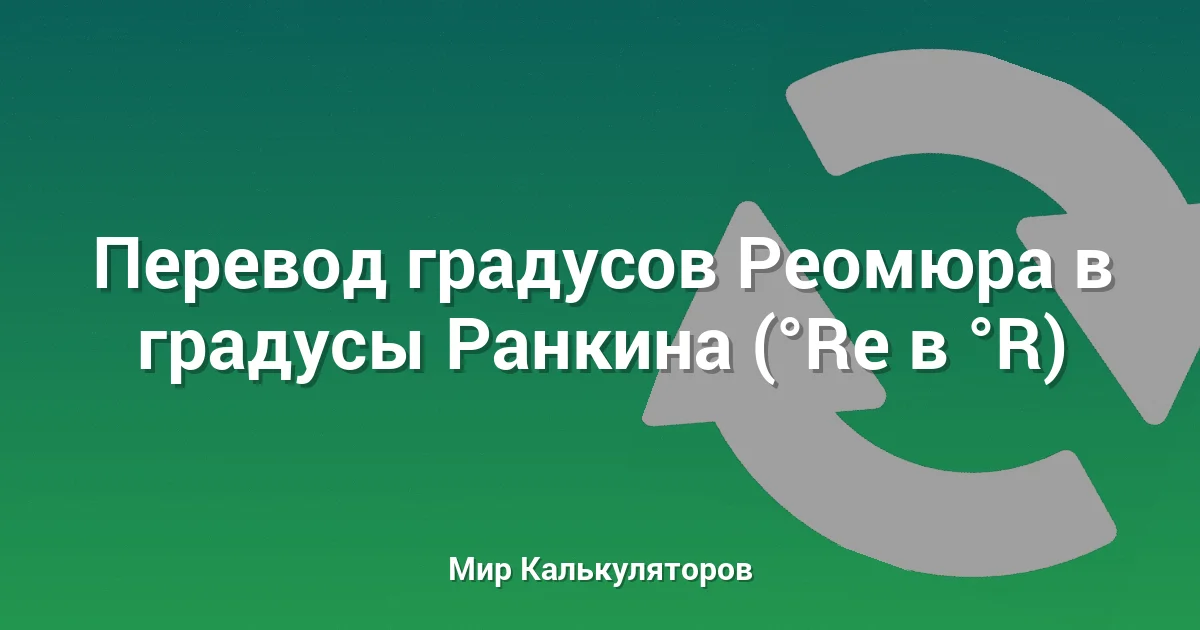 Этот калькулятор позволяет точно перевести температуру из градусов Реомюра (°Re) в градусы Ранкина (°R).